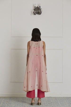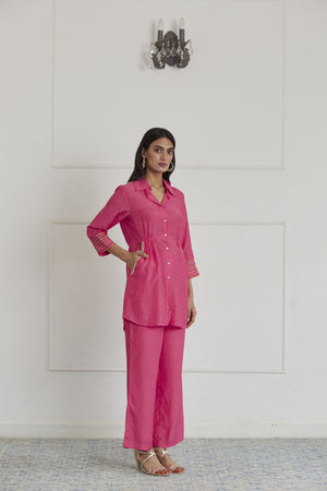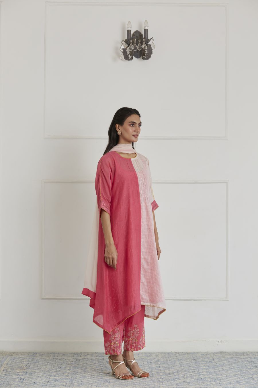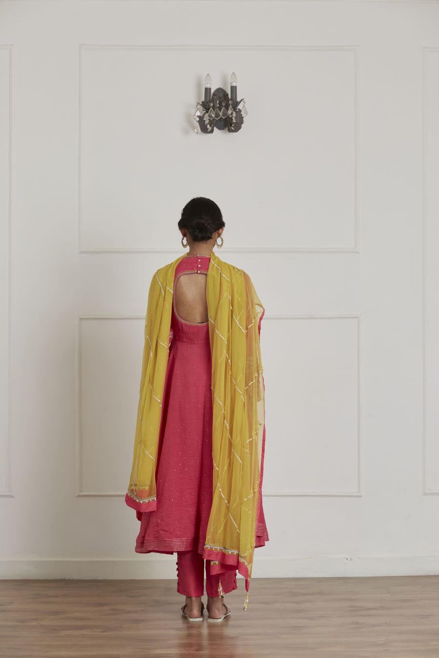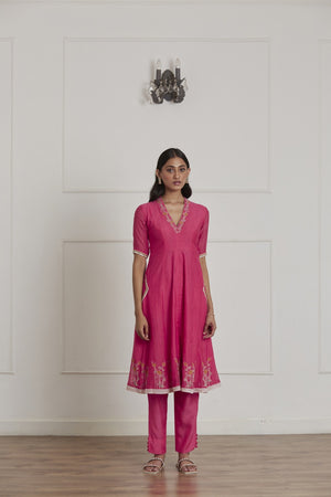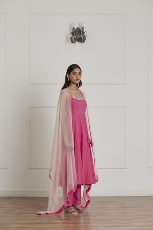 Fuschia Round Neck Full Sleeves Anarkali Set