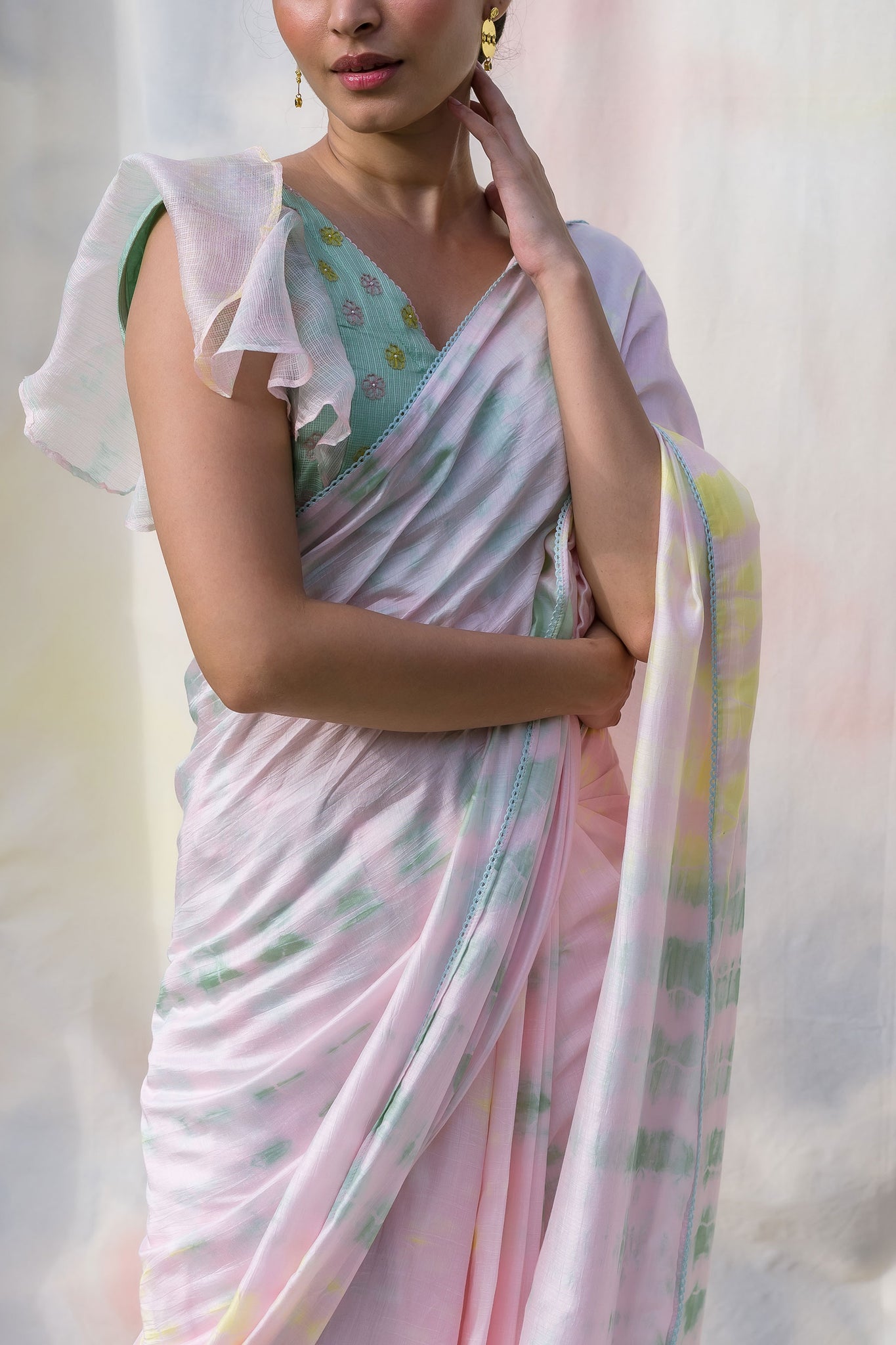 Multi Coloured Tie & Dye Saree Set