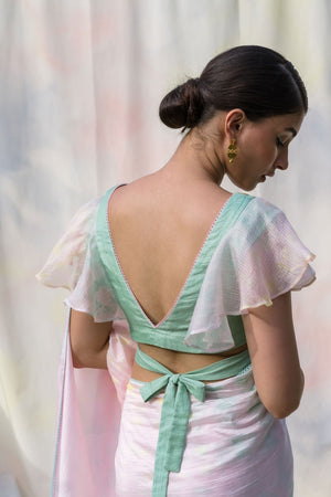 Midnight blue shaded silk and organza saree set