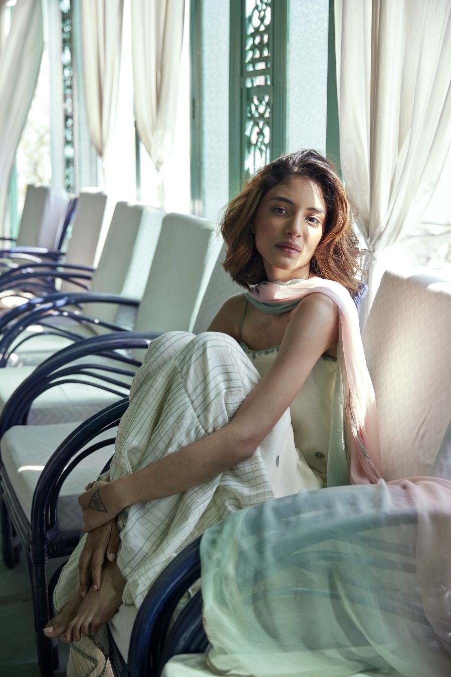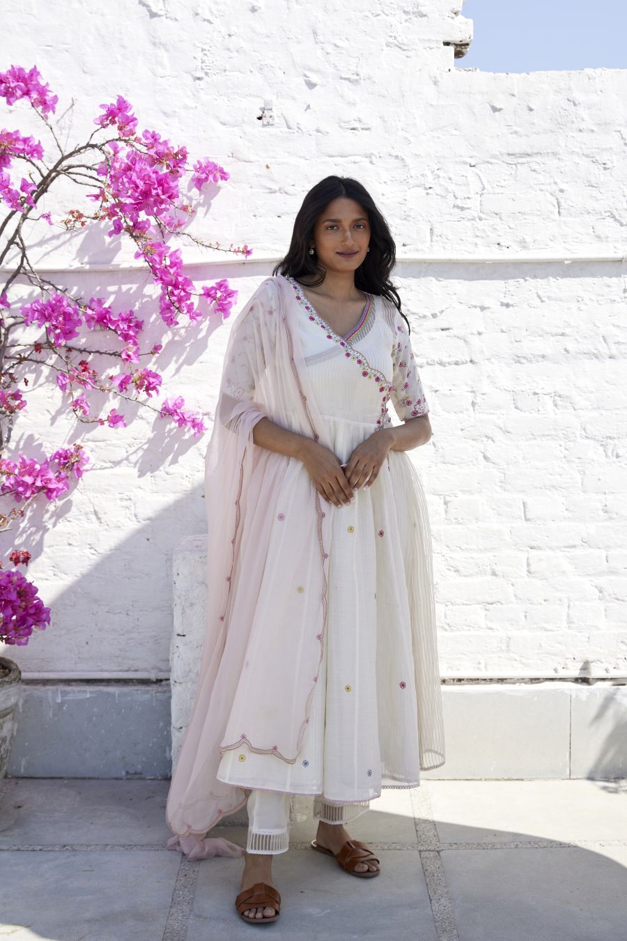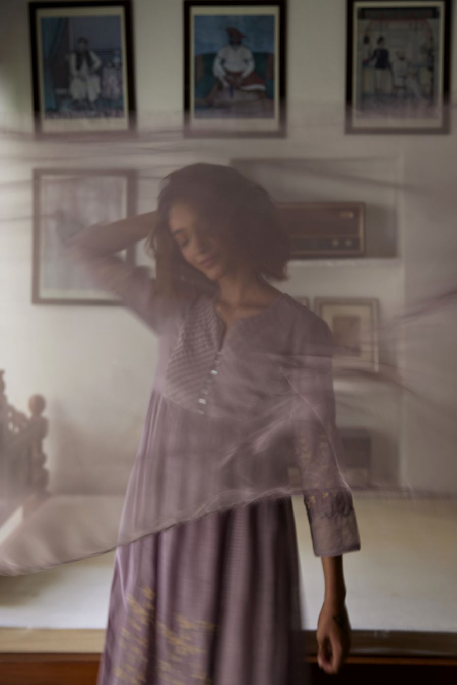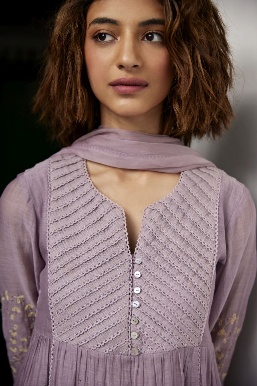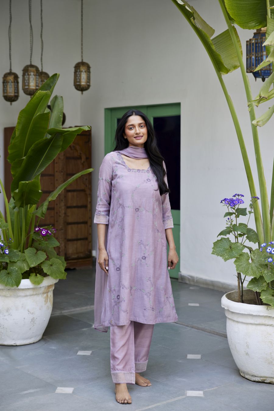 Lilac Chanderi hand embroidered Yok Kurta Set