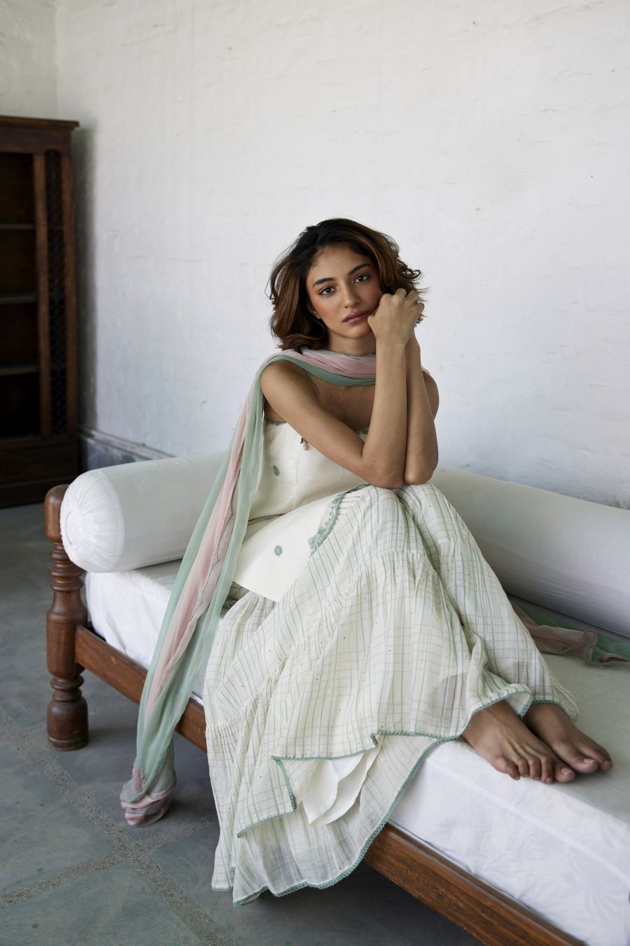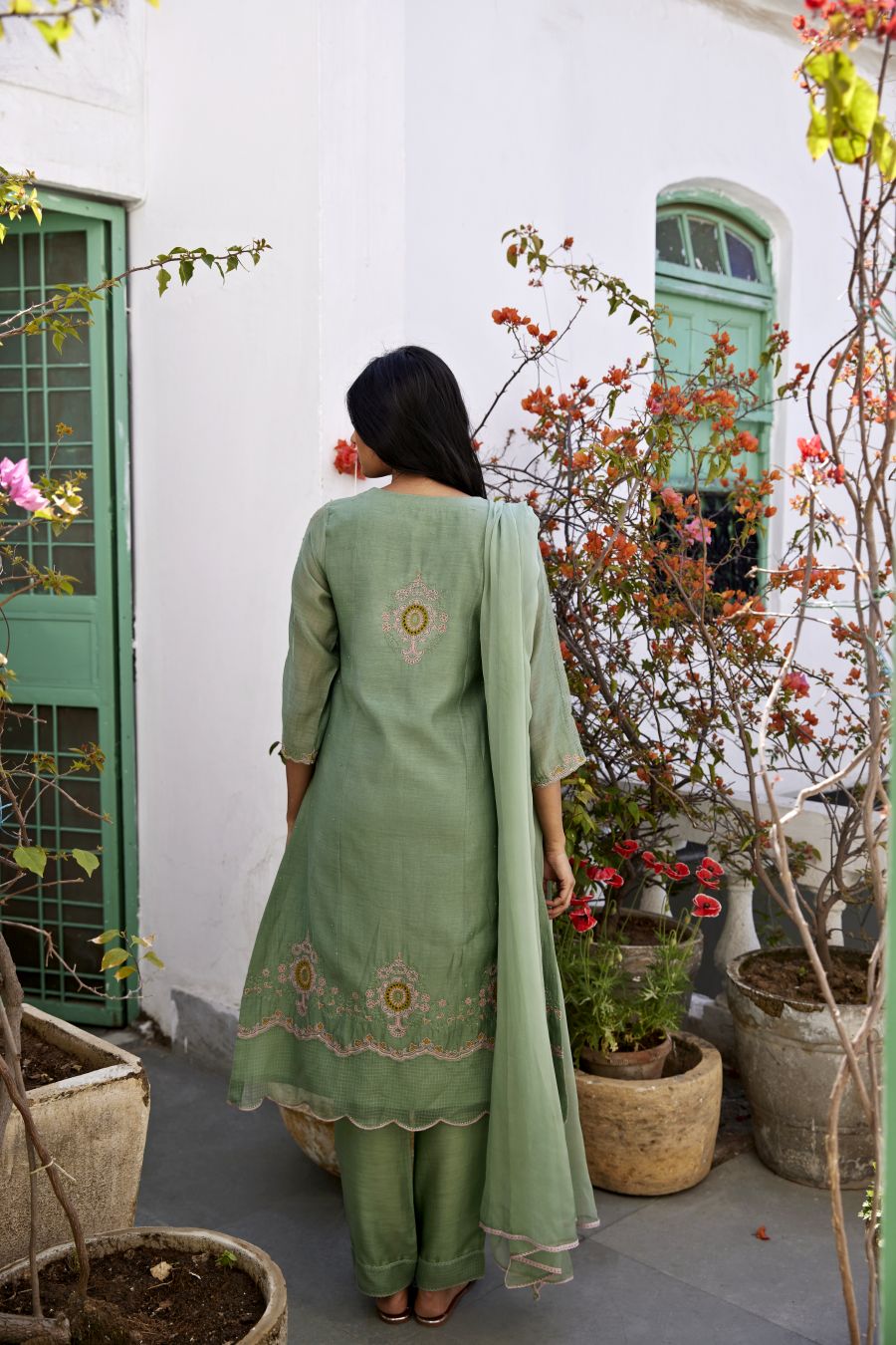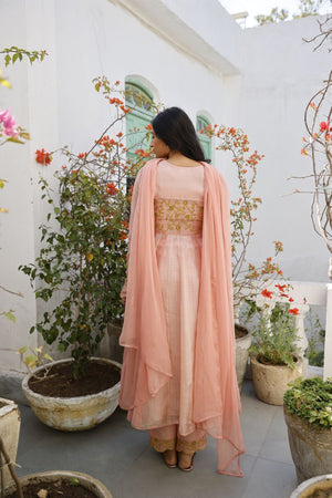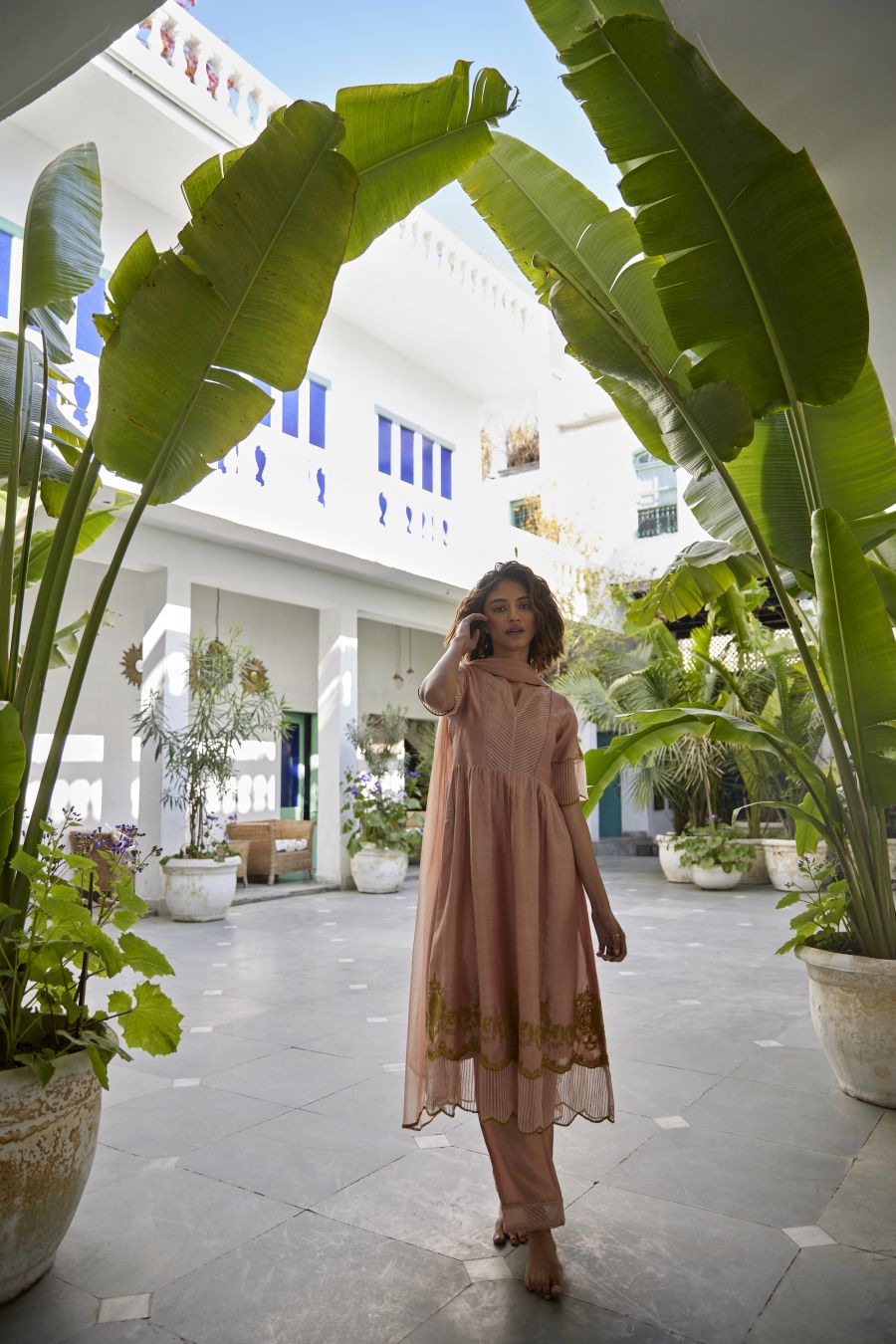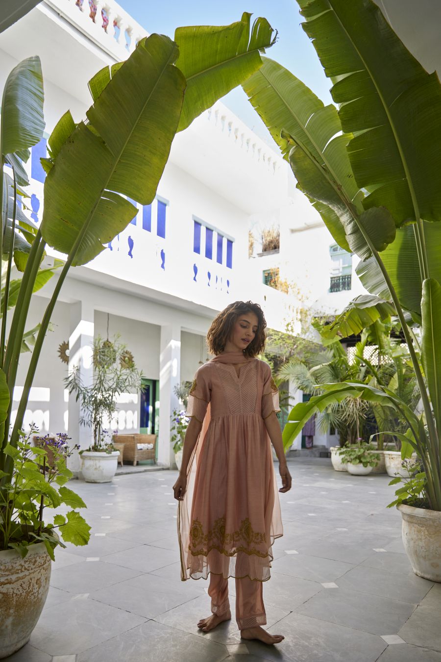 Muted Clay Chanderi & Kota Silk Anarkali Set