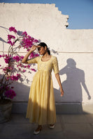 Lemon Yellow Chanderi & organza striped silk anarkali set