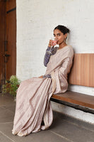 Metallic Pink Tissue Saree paired with Printed Blouse.