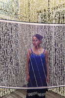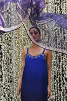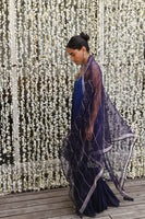 Midnight Blue Spaghetti Gharara set paired with an organza dupatta.