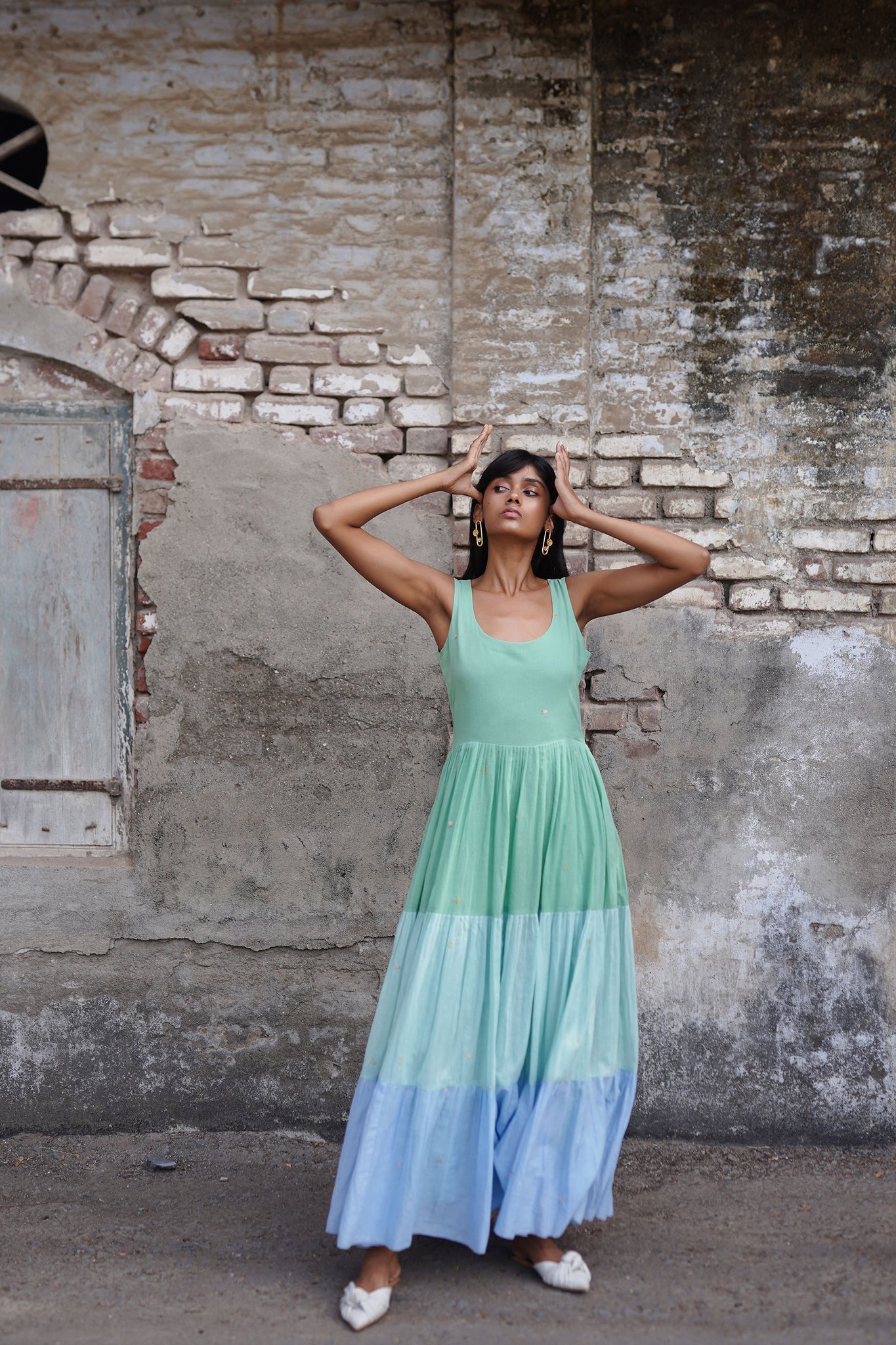 It is fed by stories of lazy summers, family vacations, brunches with your girlfriends and escapes to the farm. Layers, textures and handwork all unite with ease and playfulness. Each piece is handcrafted from supple, organic fabrics like cotton muls, handloom khadi and denim, chanderi, kota doriya and poplin