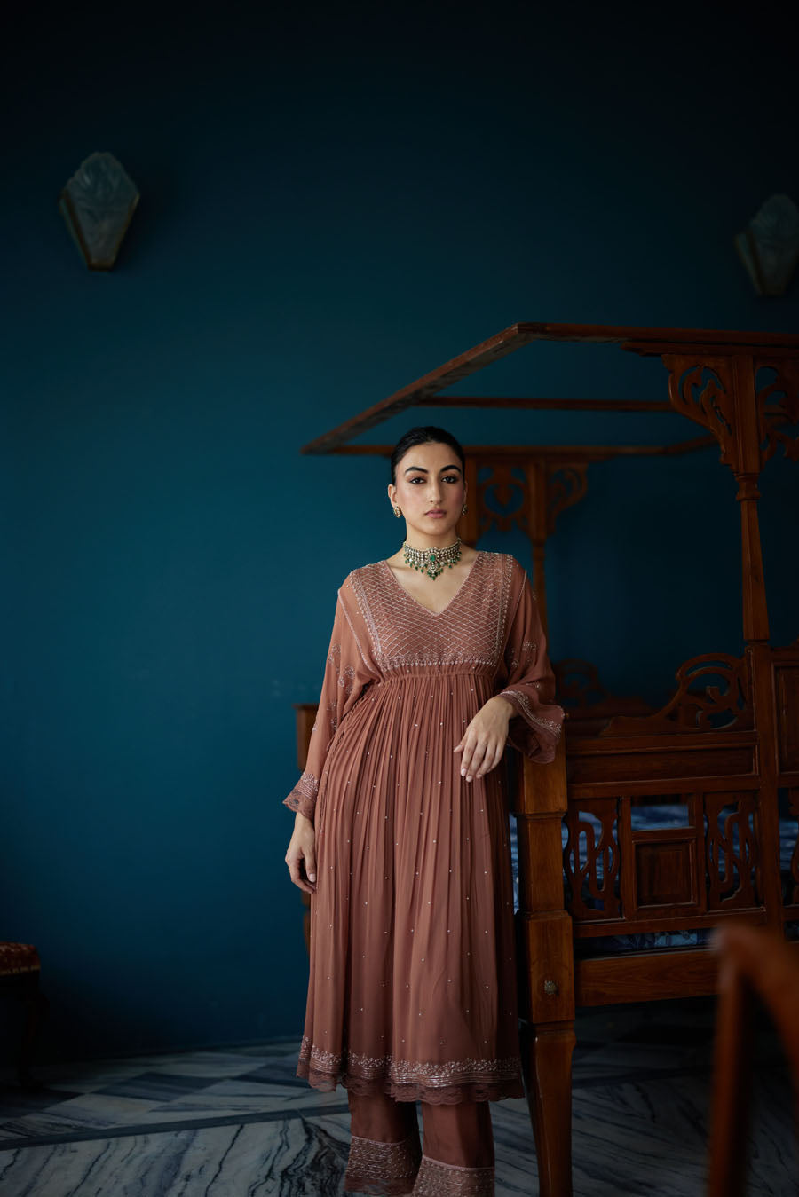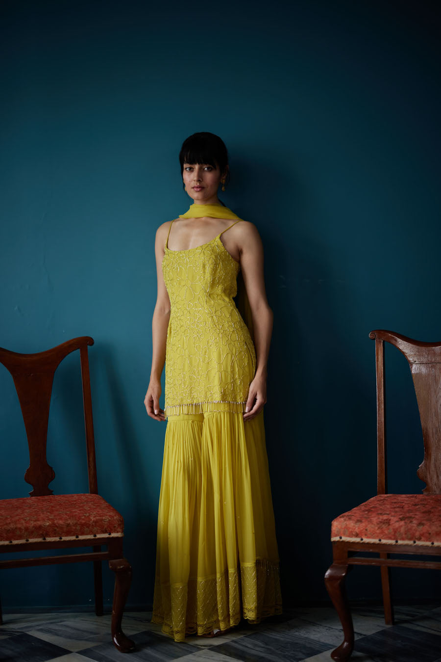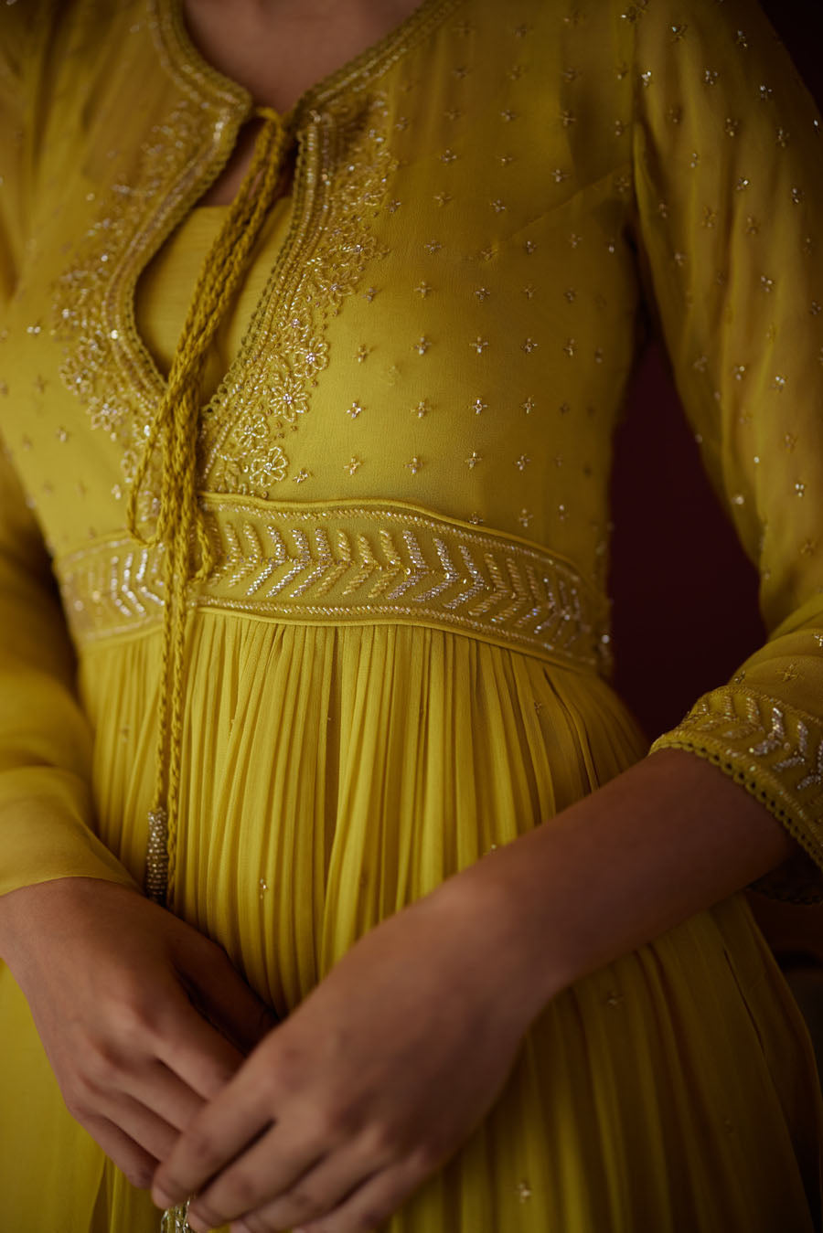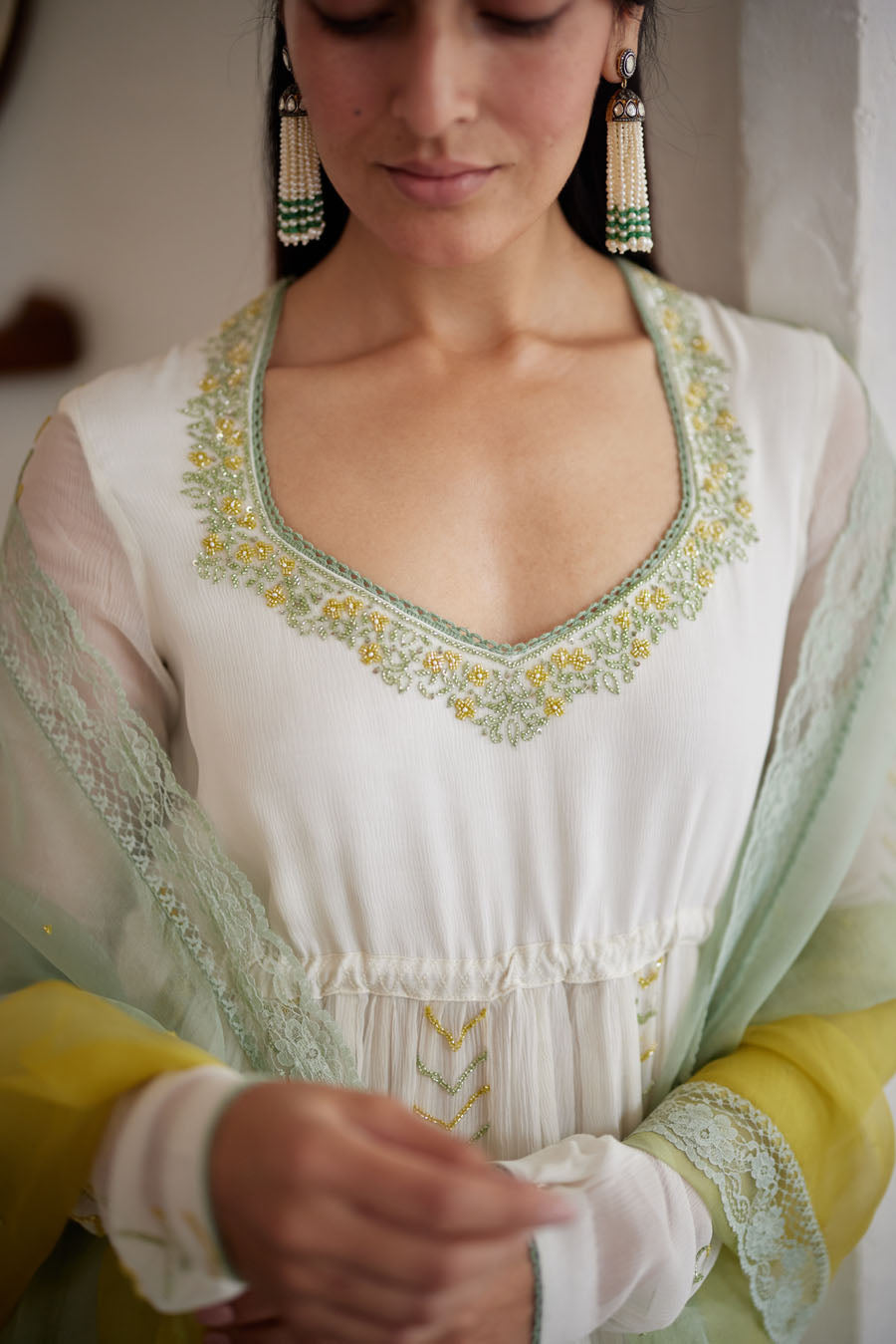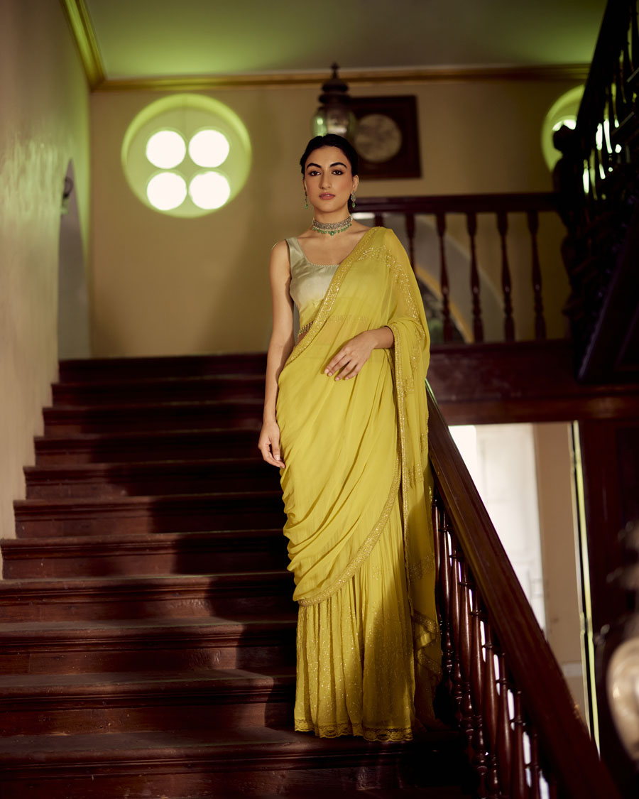 Sorbet shades of summer, in flattering silhouettes, elaborately detailed at our atelier in Surat; details that gracefully elude a shallow glance, shimmer with the sun and lay elegantly in the charming folds of fabrics.