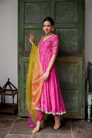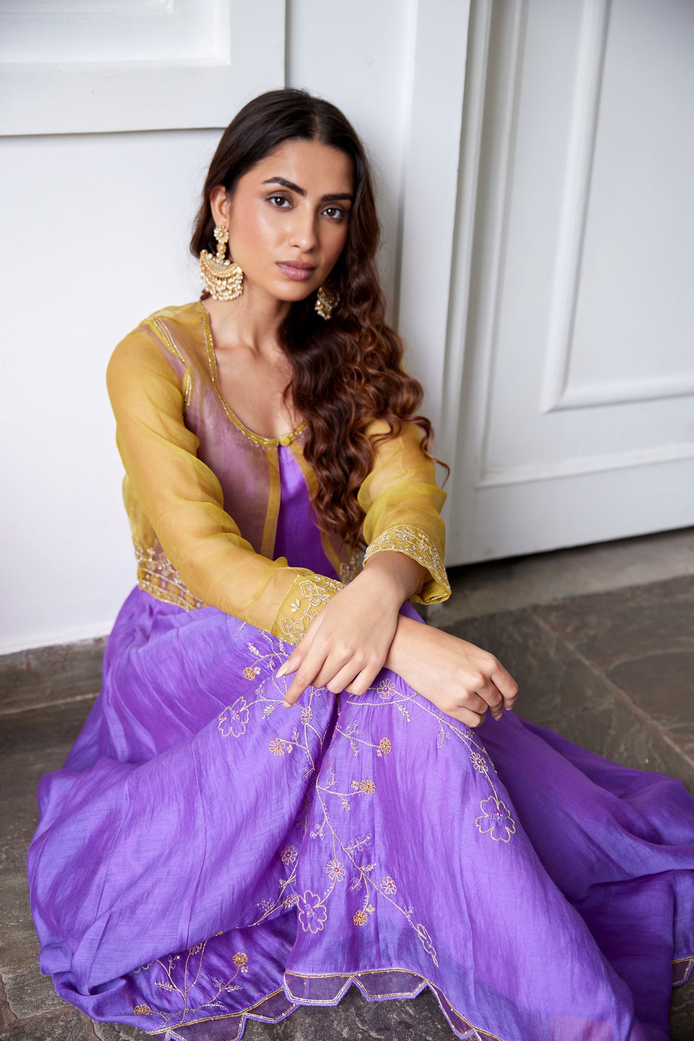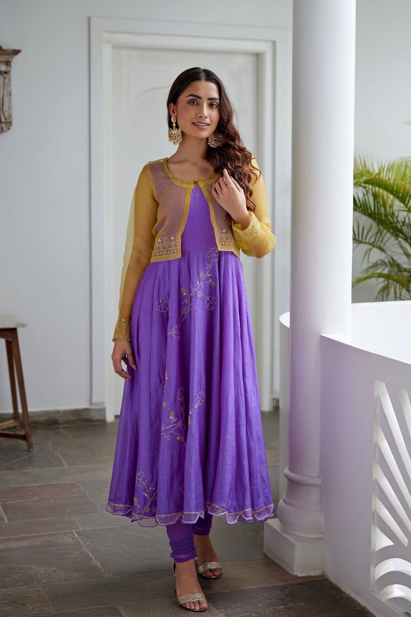 Royal Purple Hand Embroidered Jacket Anarkali Set