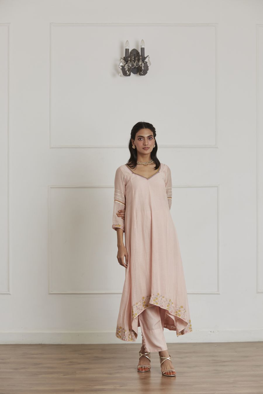 Baby Pink High Low Anarkali Set