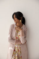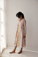 Lotus Pink hand embroidered overlay made in chanderi & kota. Paired with a lotus pink sleeveless dress in chanderi with digitally printed floral jal all over. Paired with cotton mul inner.