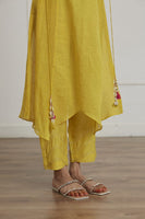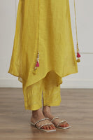 Mustard Yellow Silk Chanderi Kurta Paired With Silk Pants And Dupatta